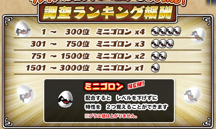 調査は、調査力が2500ごとに1匹連れて帰るモンスターが増えるようです。
