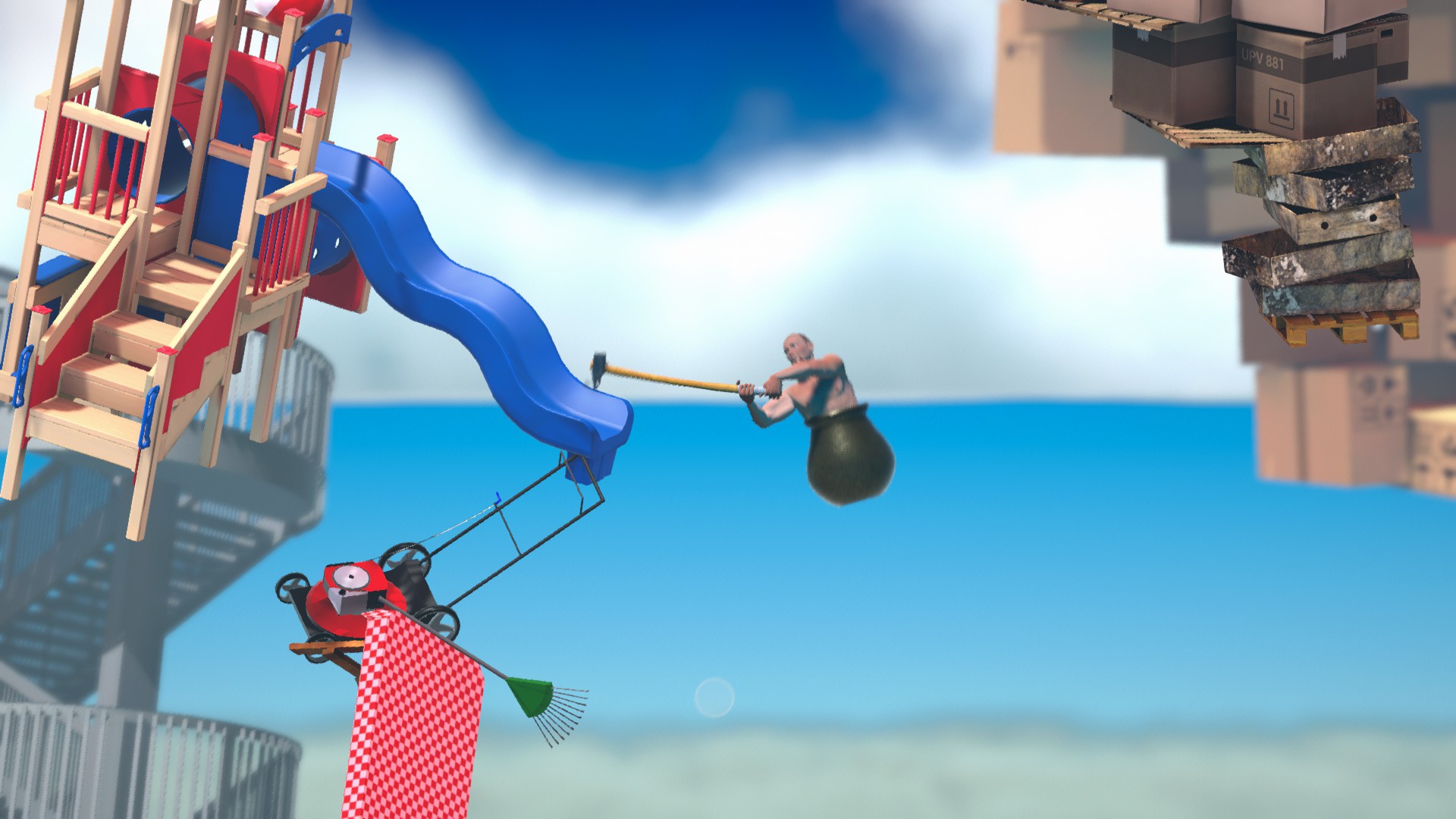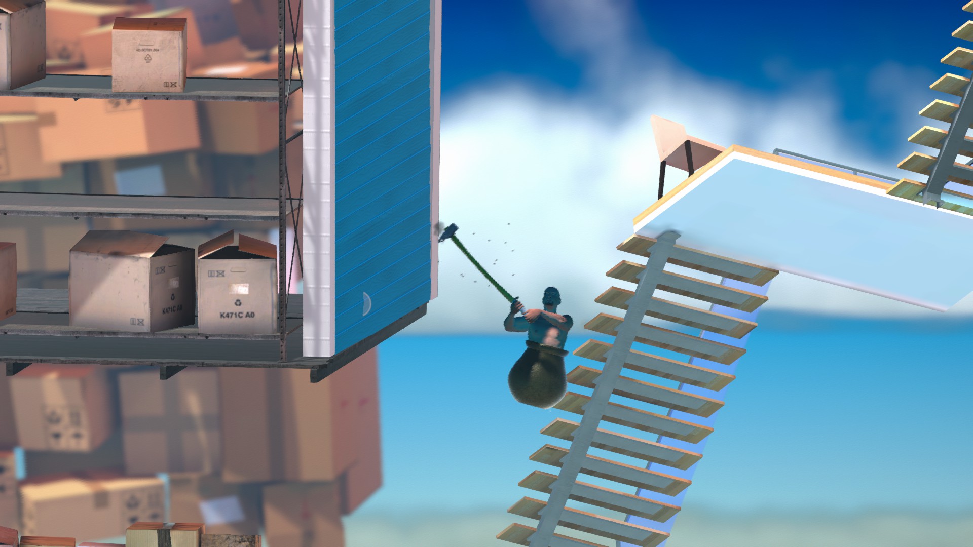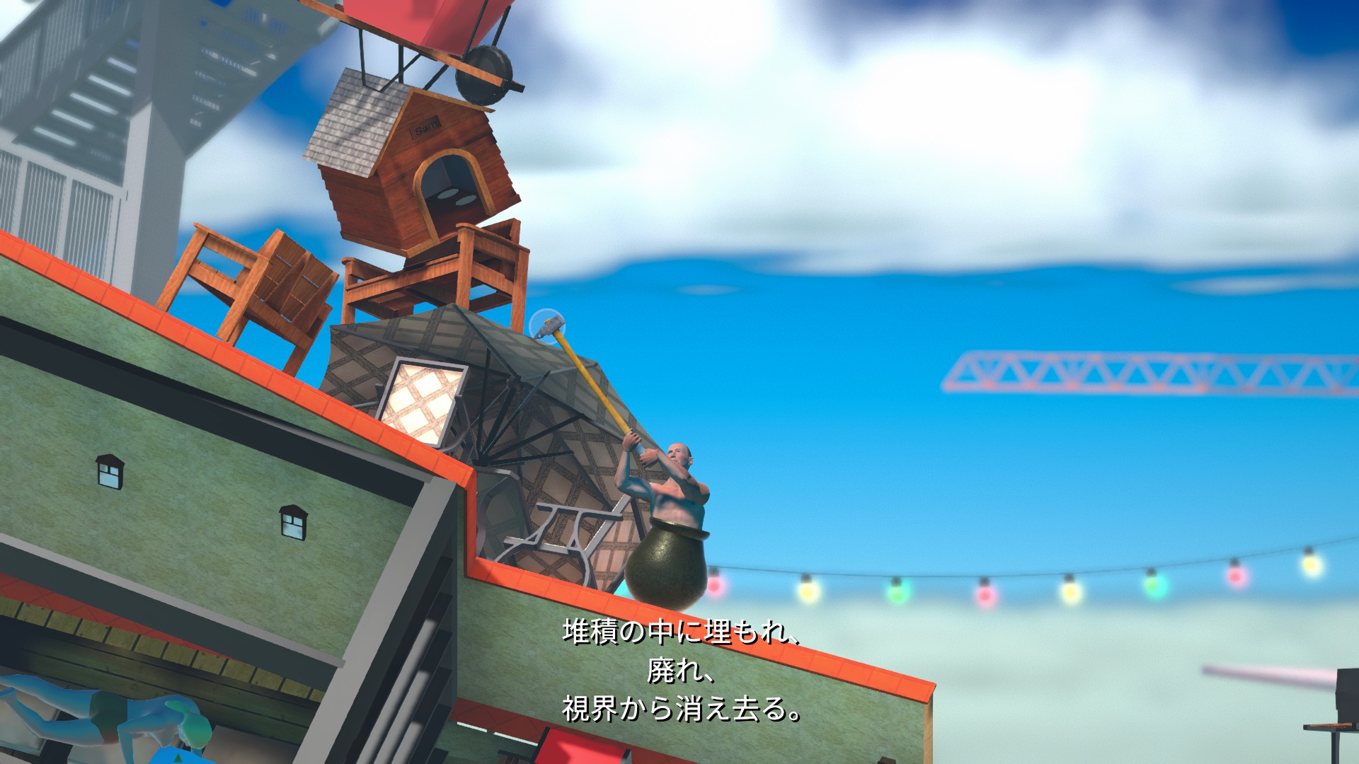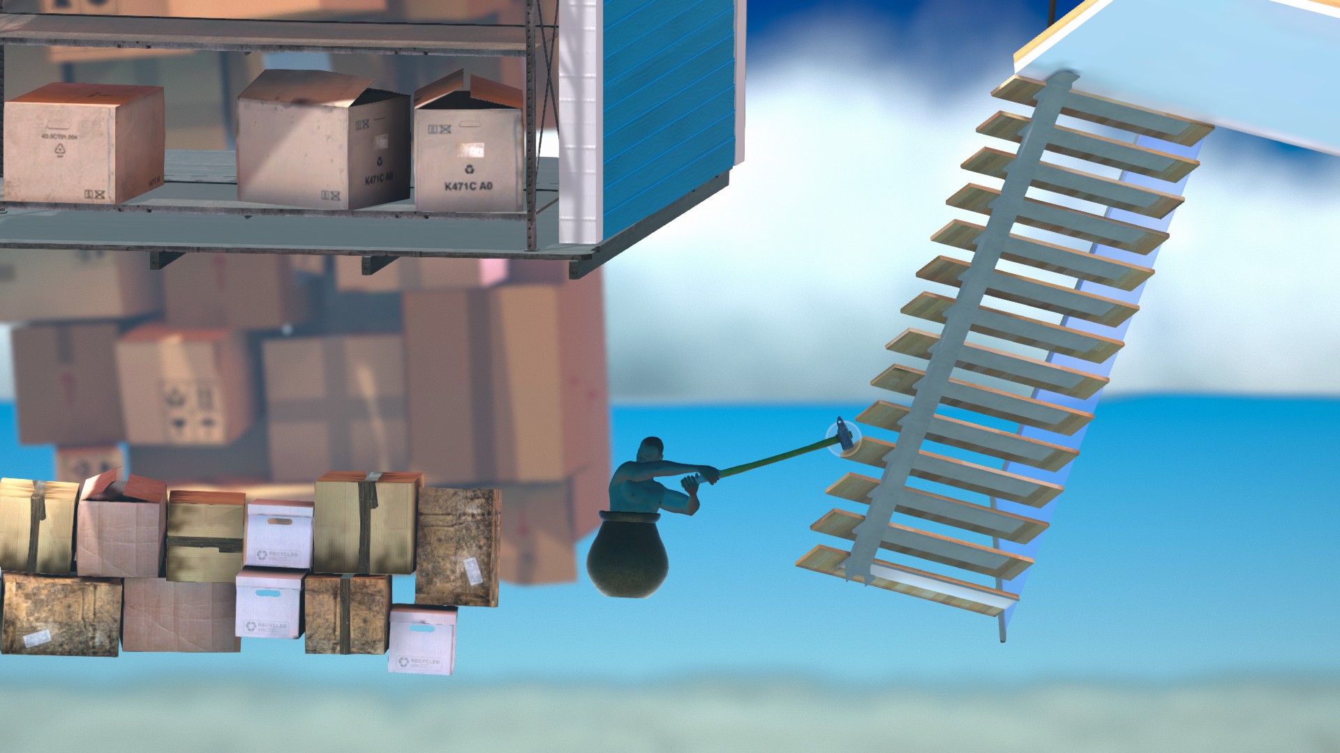 上のコンテナにもしっかり当たり判定があるので、ハンマーだけ棒に引っ掛けましょう。