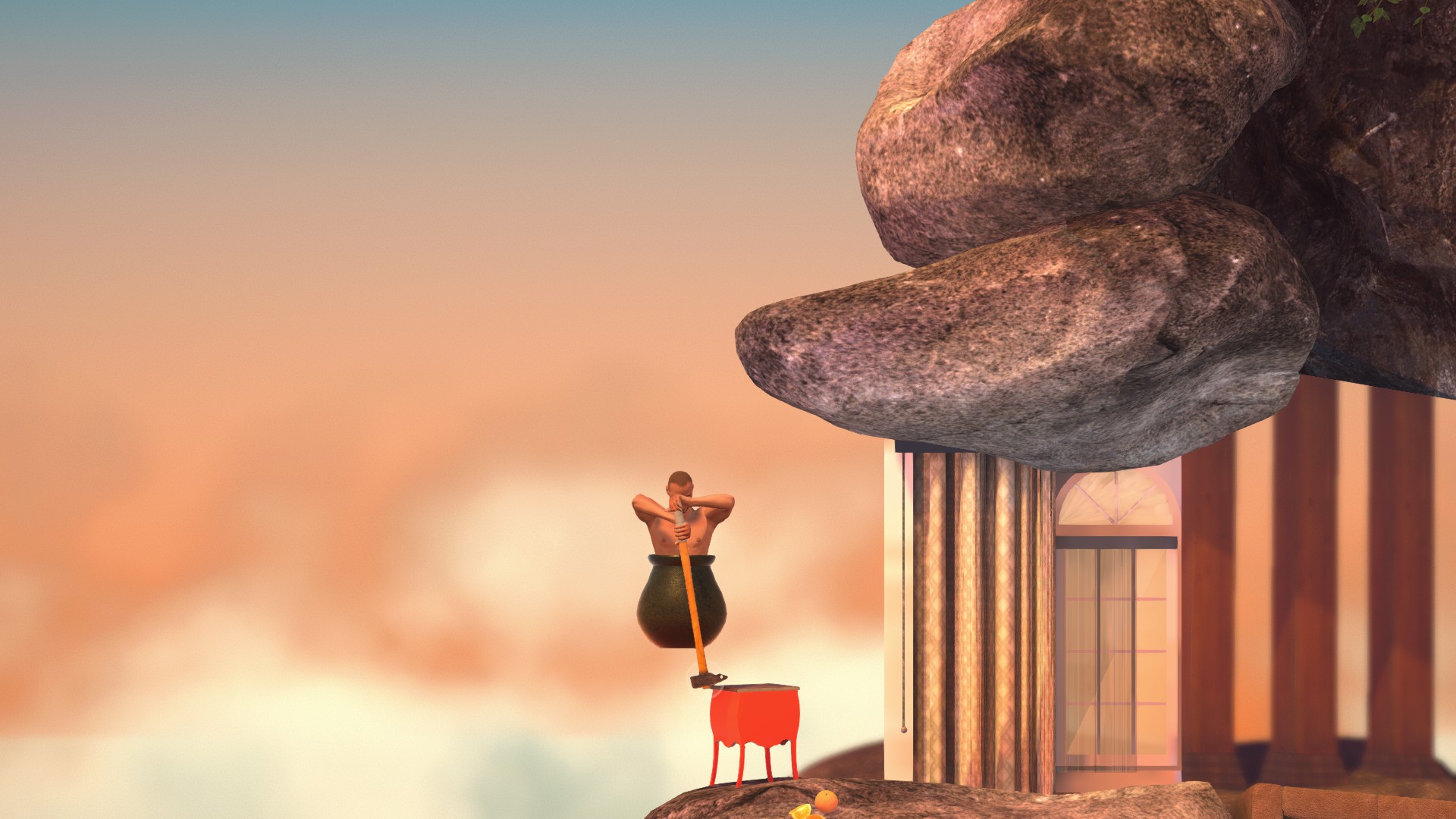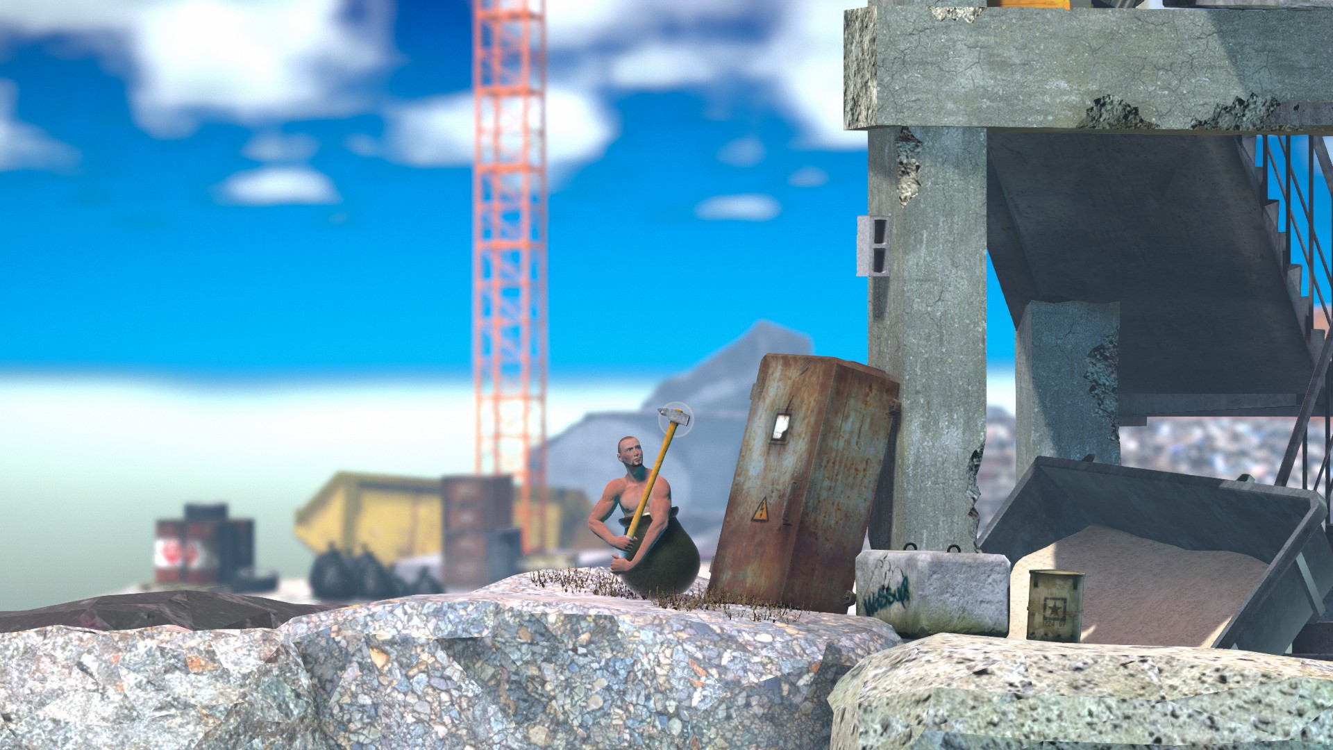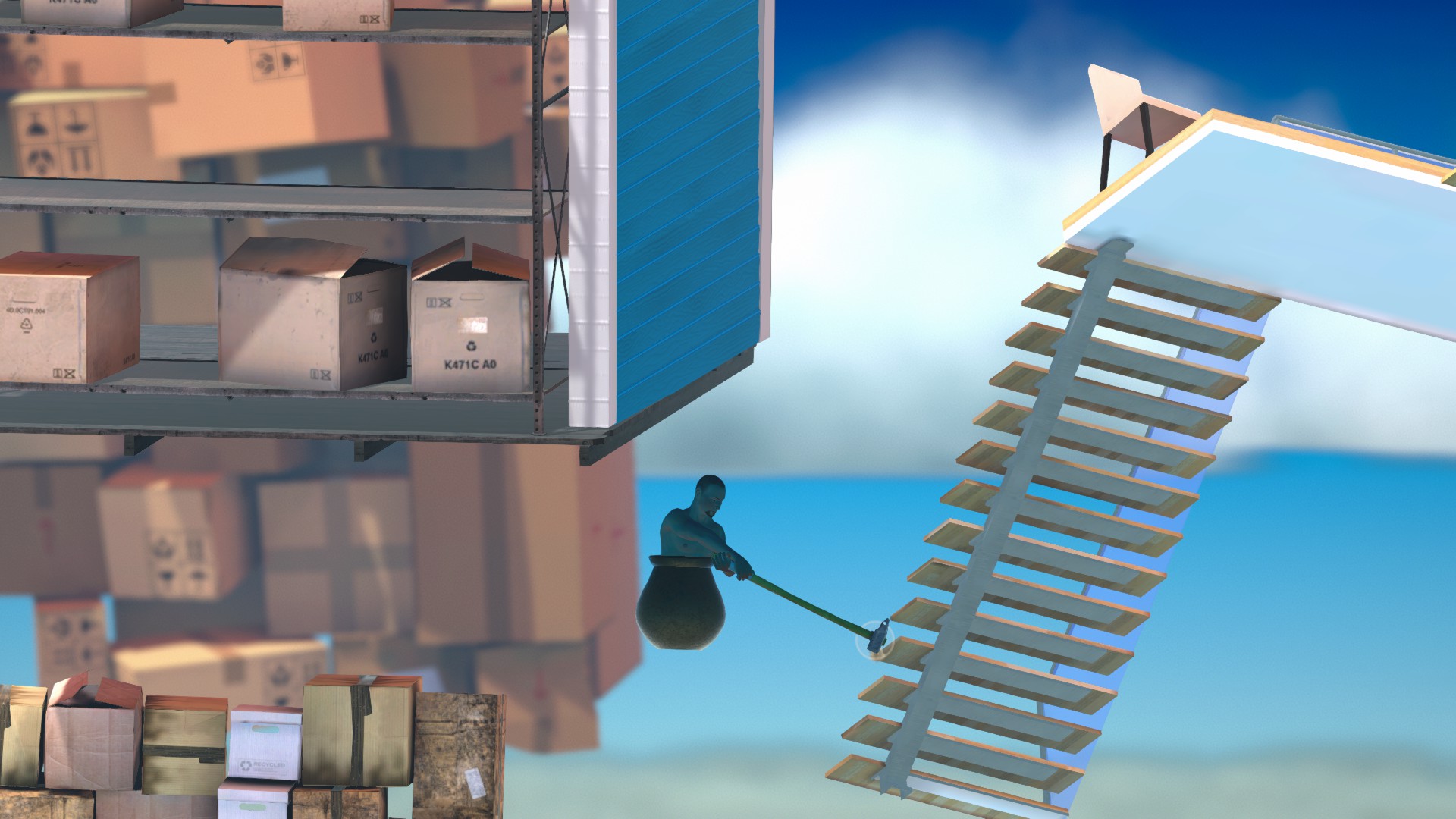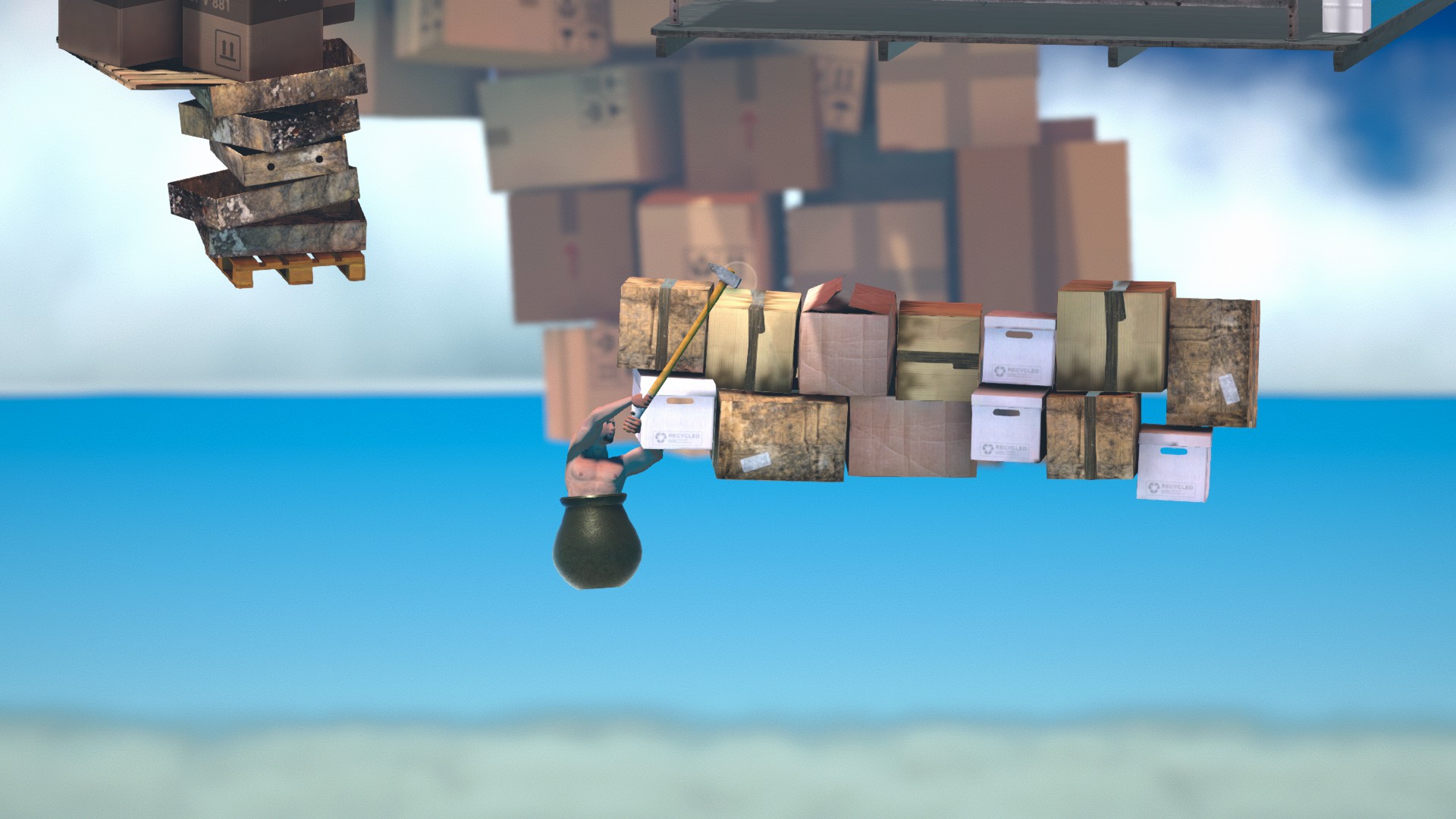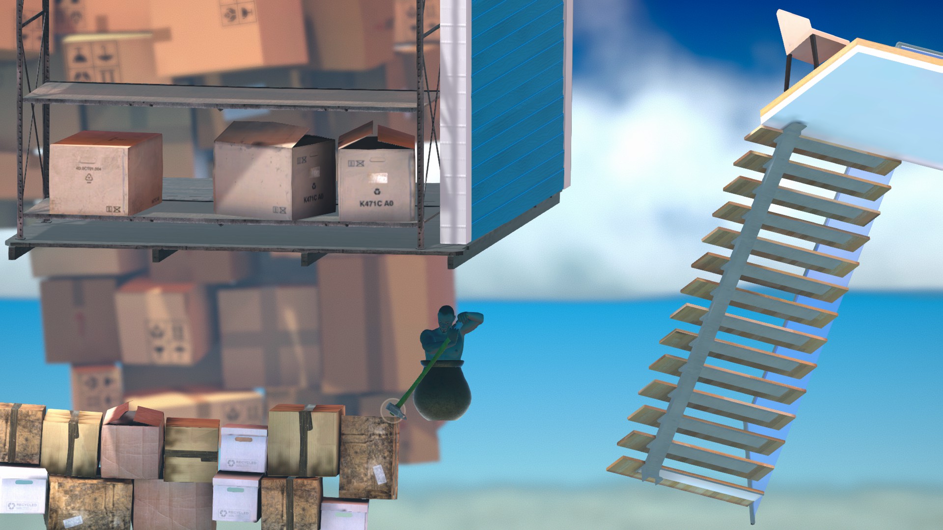 上のコンテナにもしっかり当たり判定があるので、ハンマーだけ棒に引っ掛けましょう。