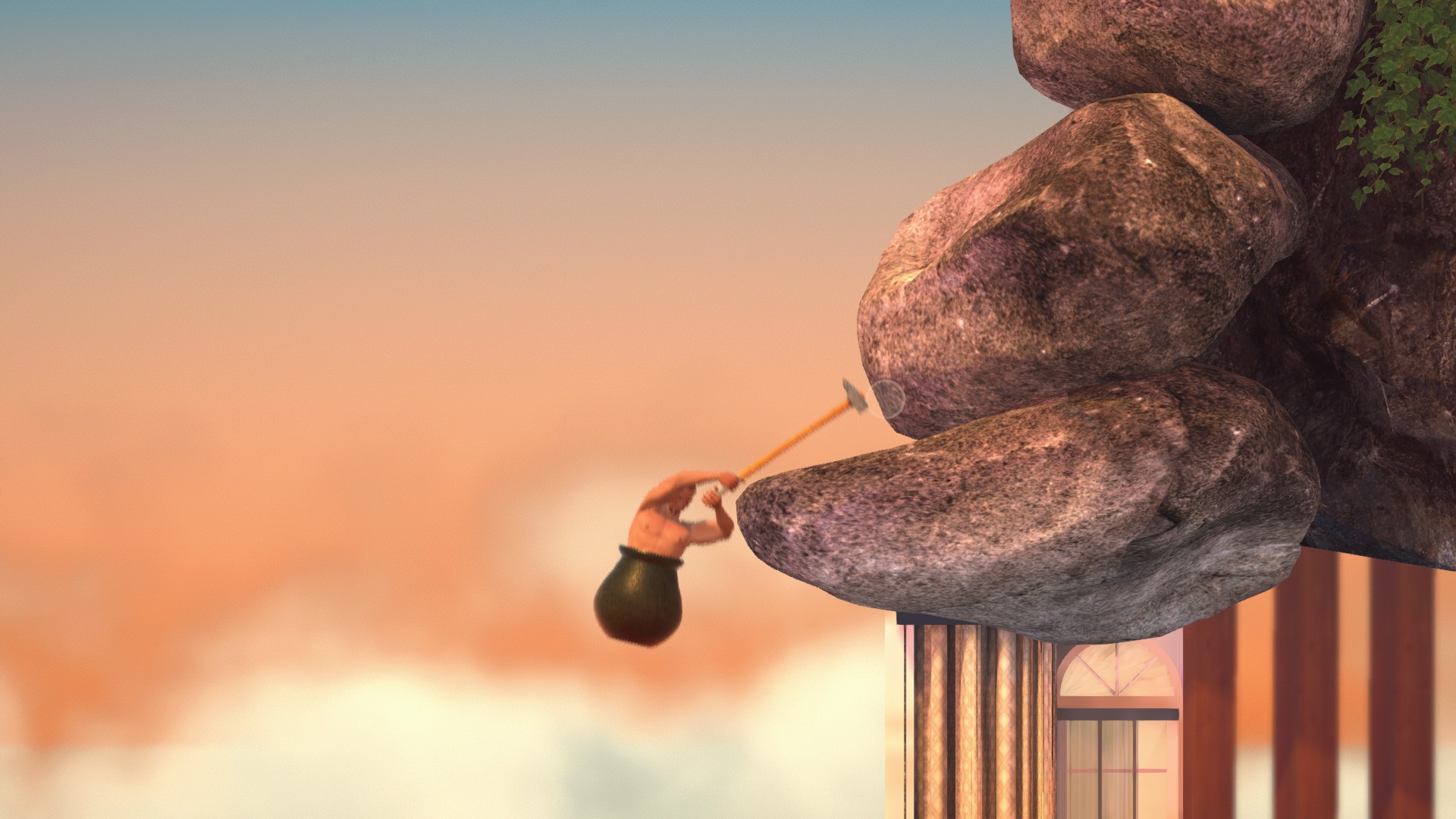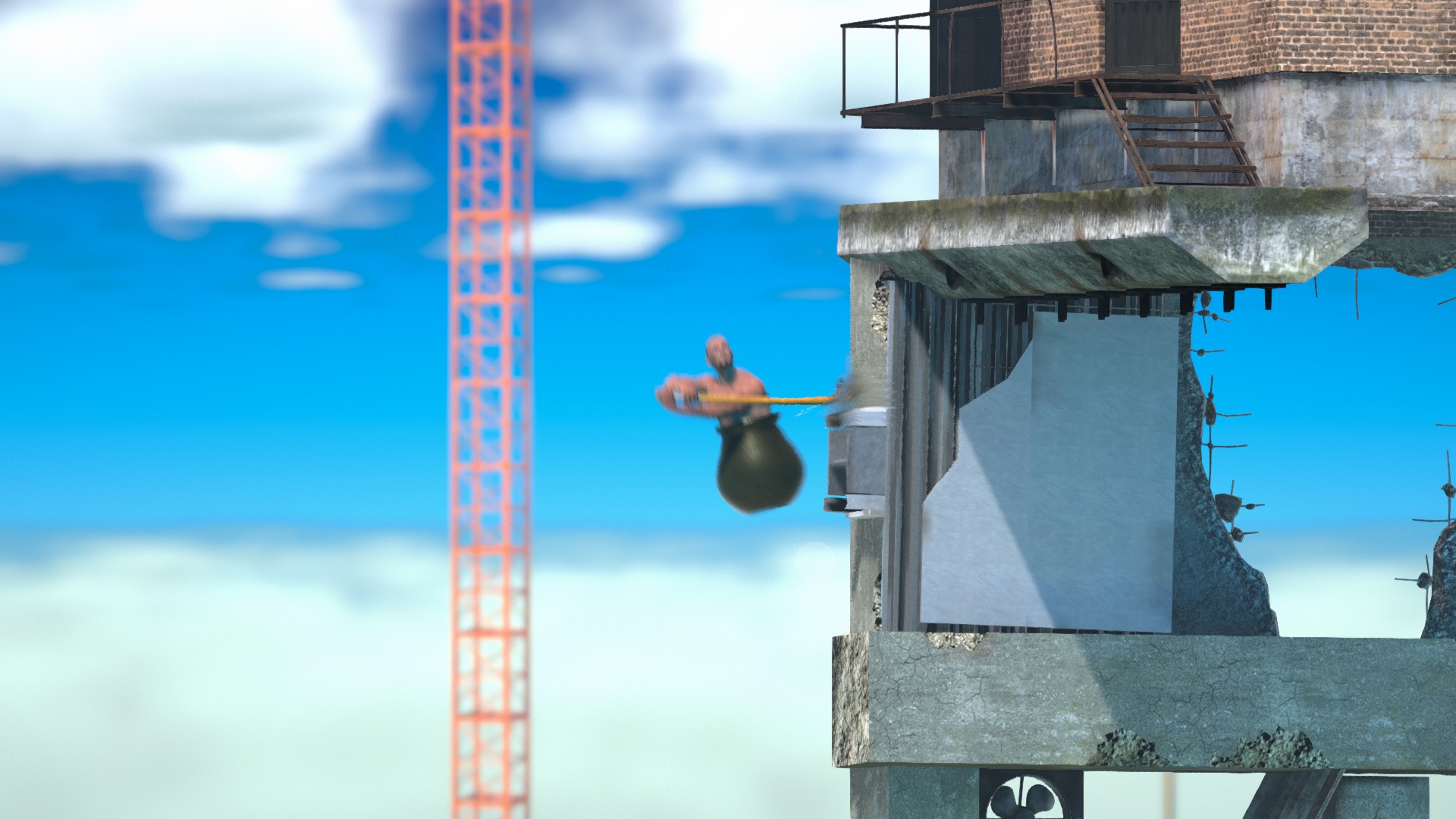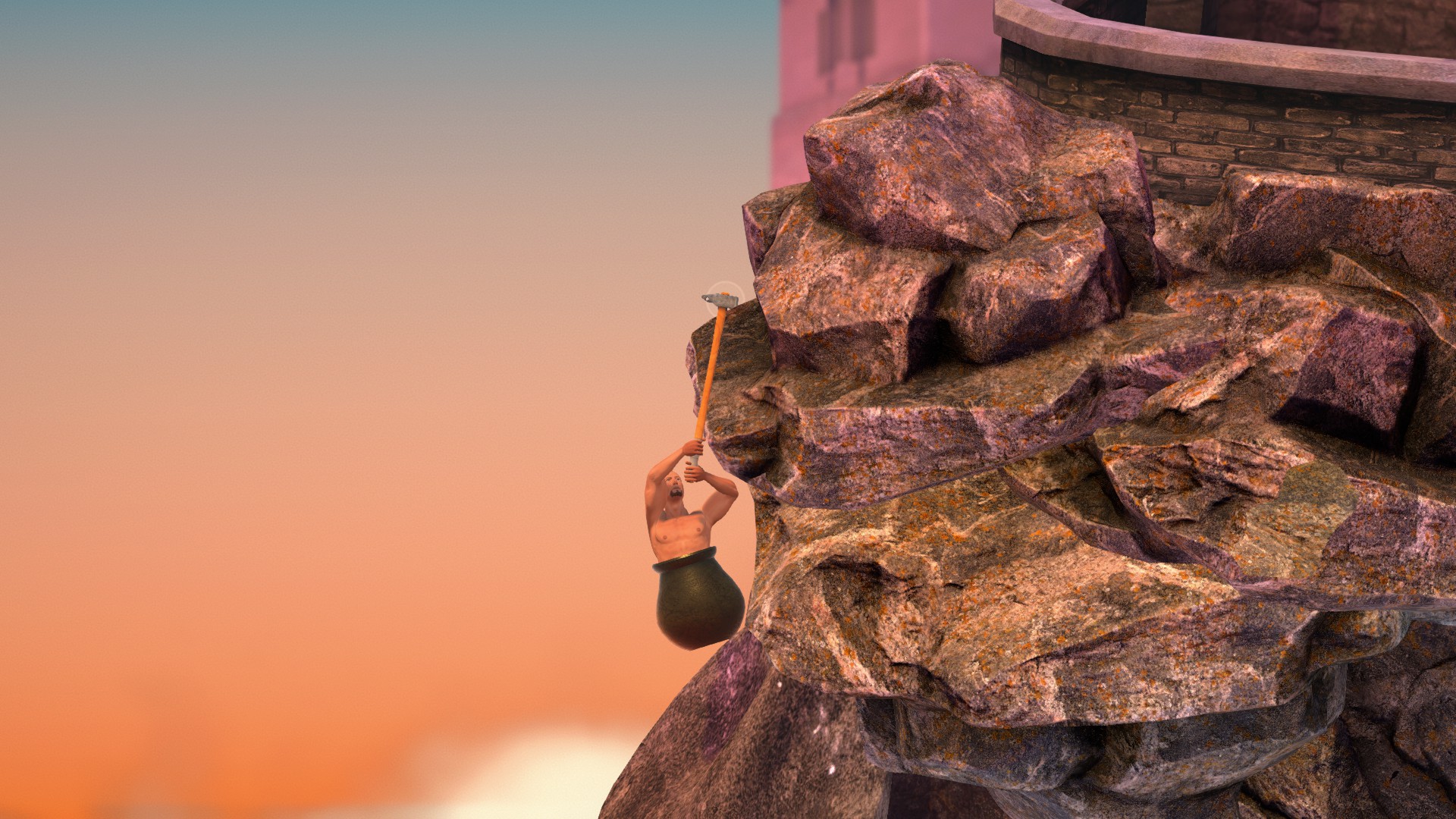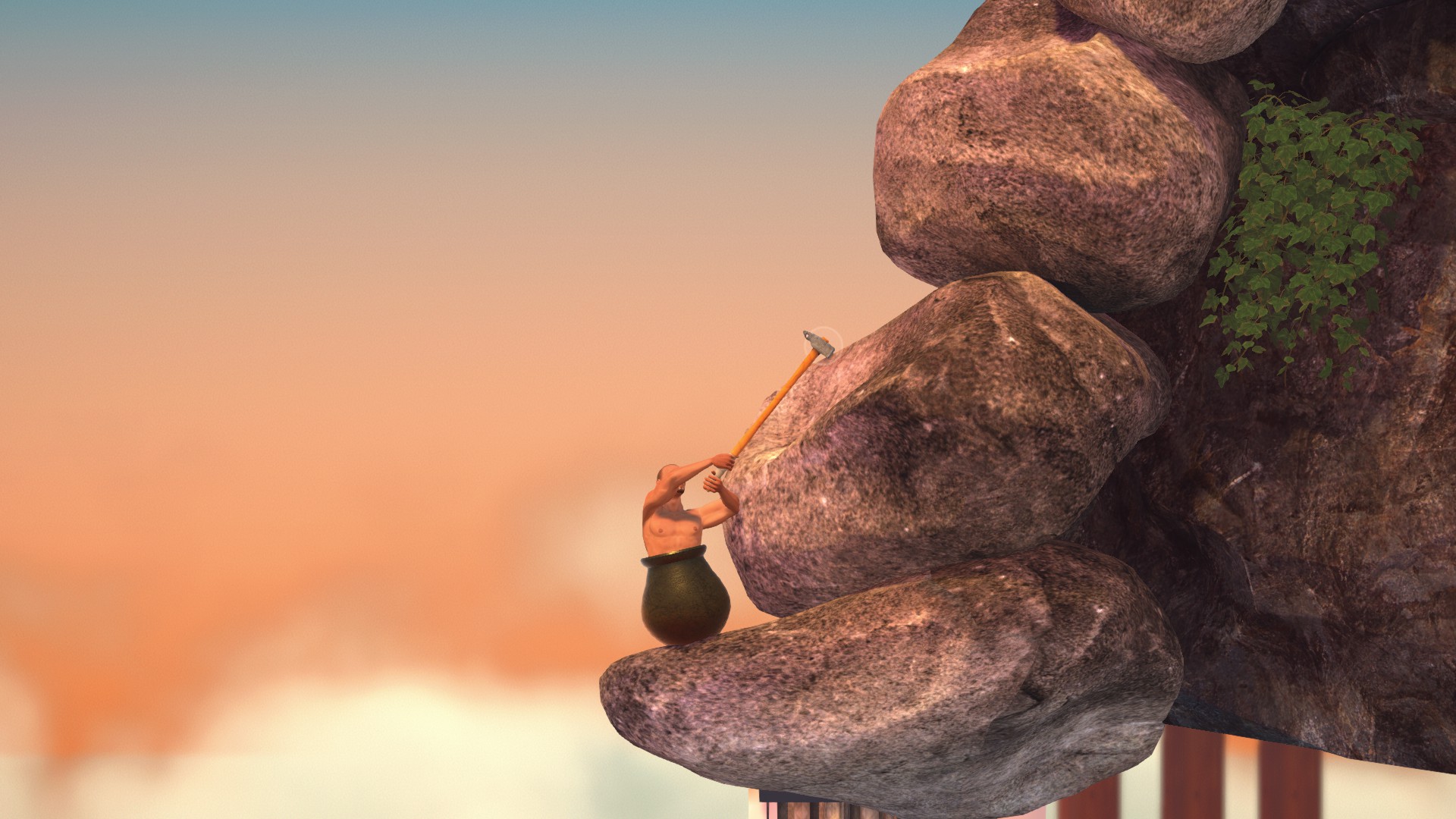 ここは画像の位置から、腕をめいっぱい伸ばした状態でハンマーを回すだけで登れます。