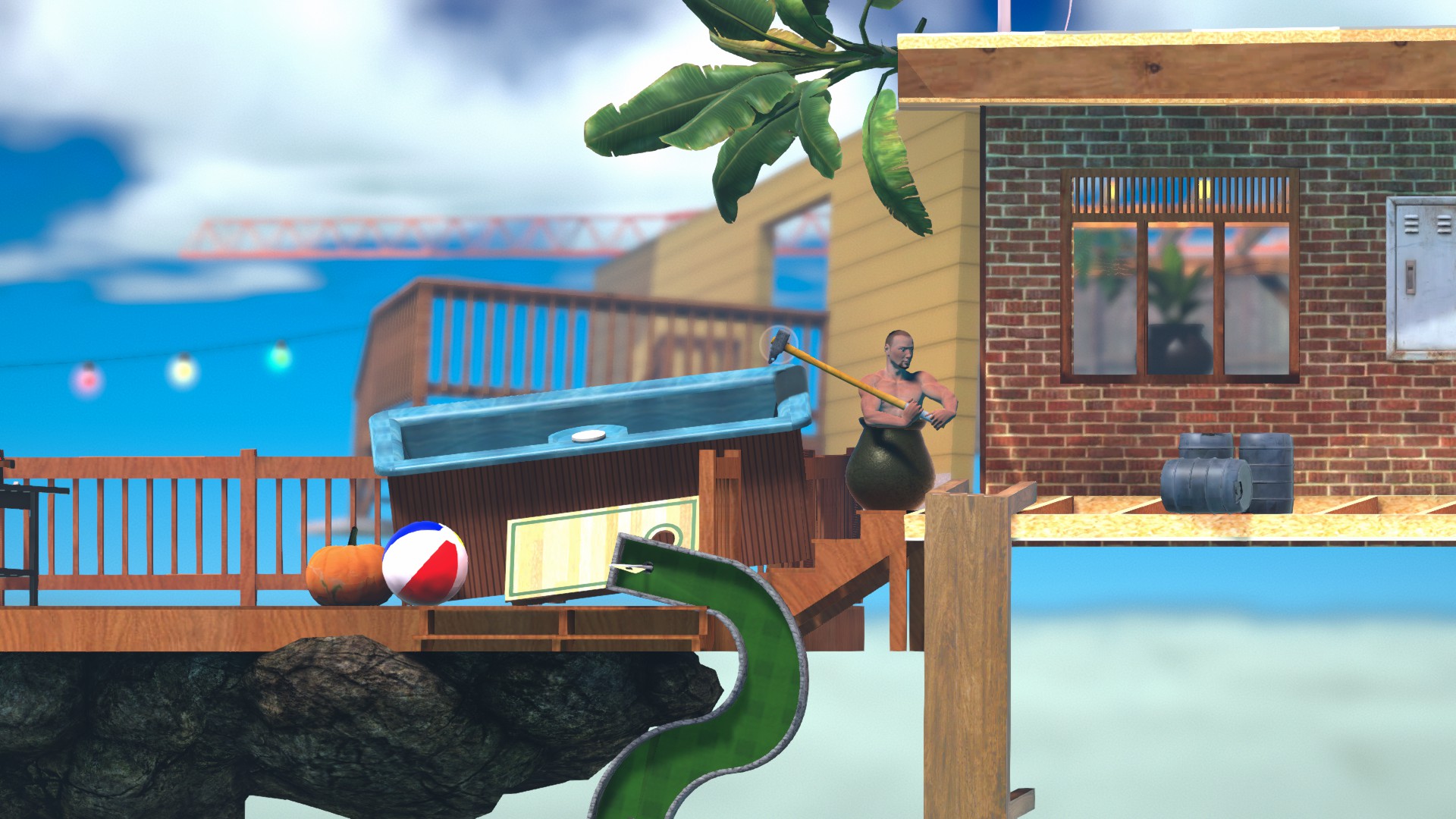 木の板に当てて登った場合は待たずにハンマーをぐるぐるするだけで滑り台まで登れます。
