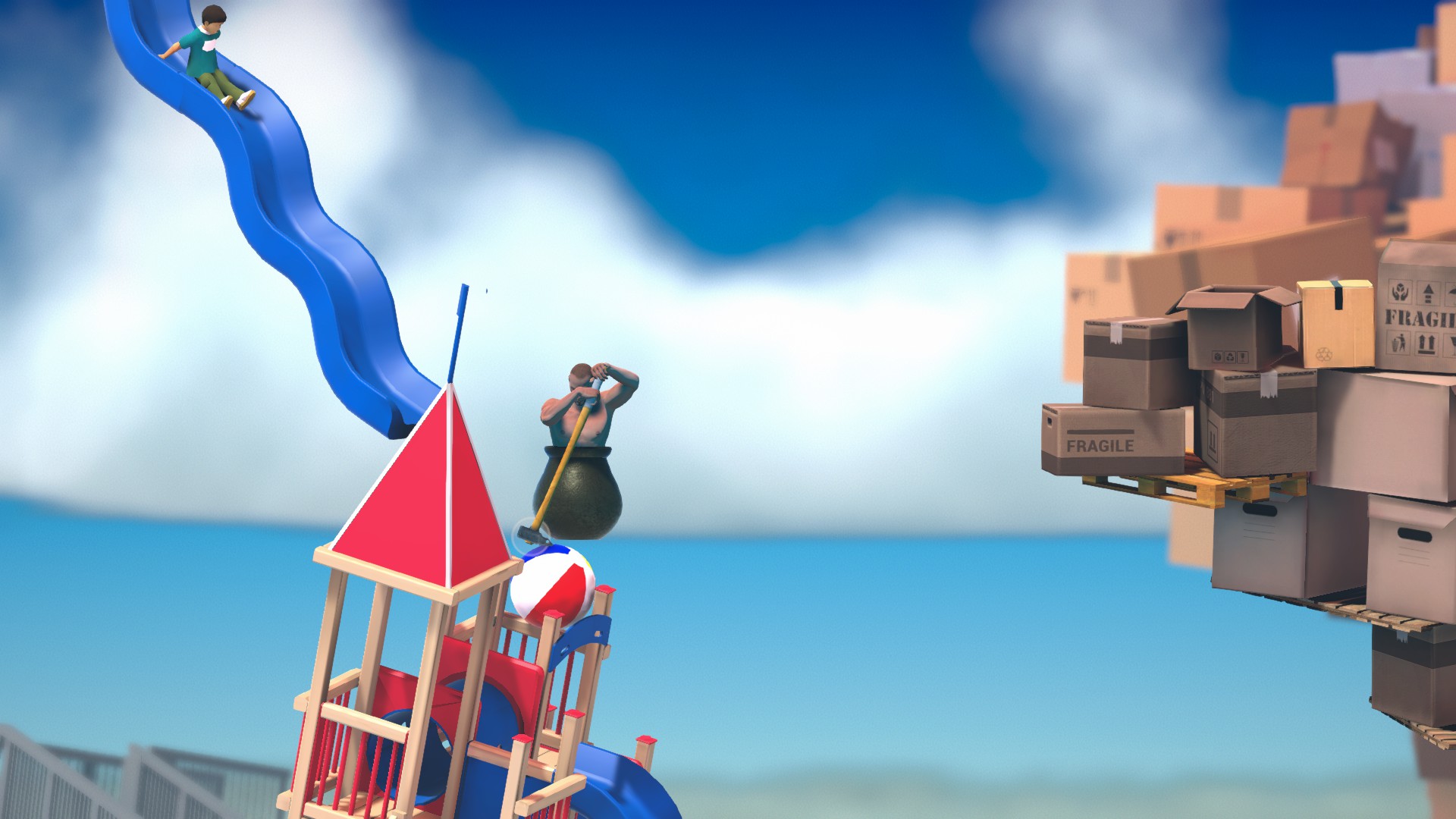 滑り台の先端でも、焦らず落ち着いてハンマーを一回止めれば登れると思います。