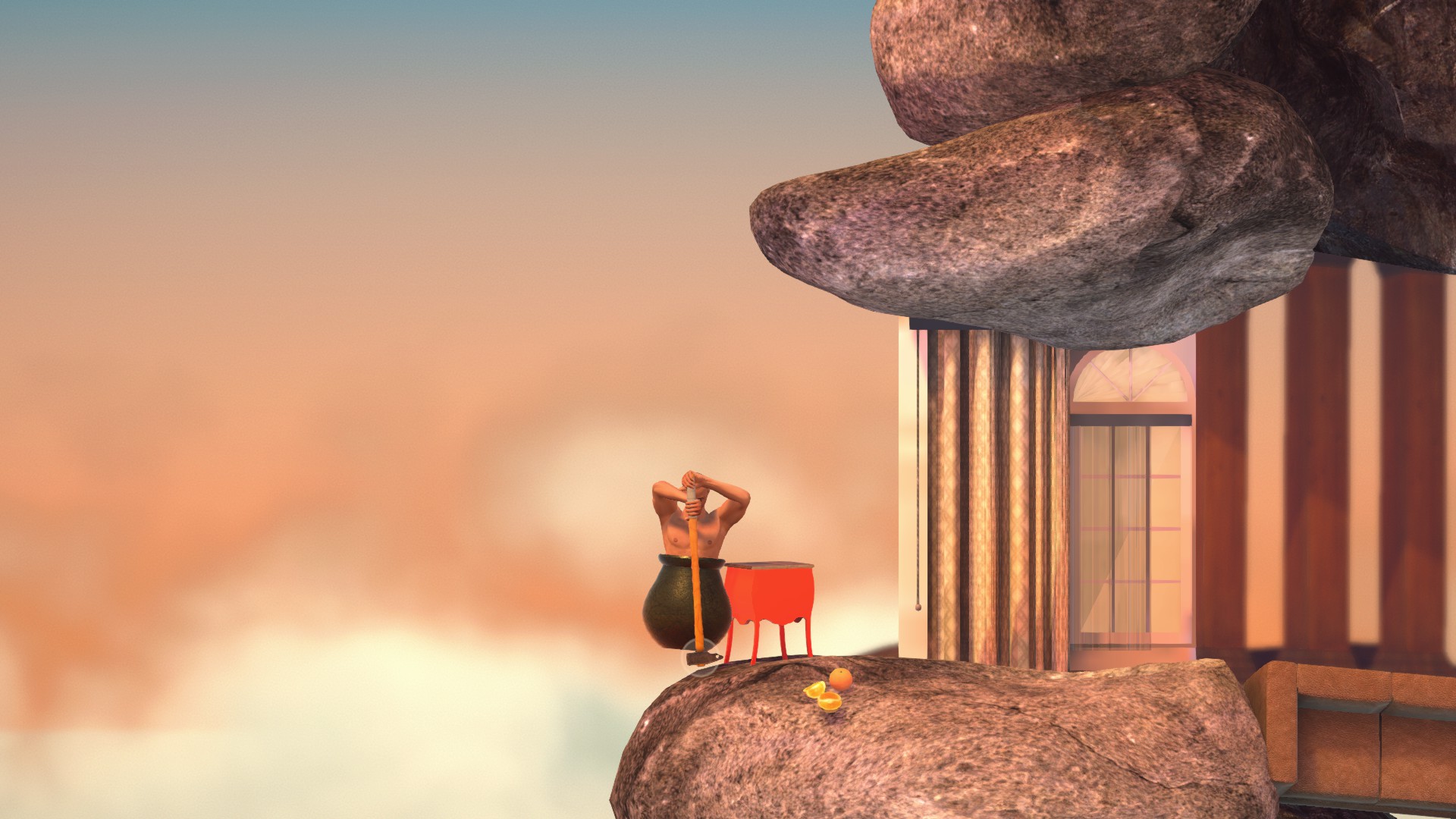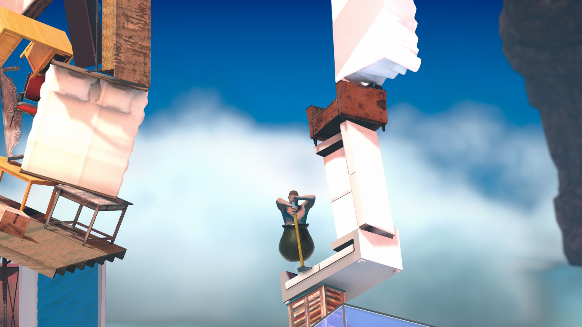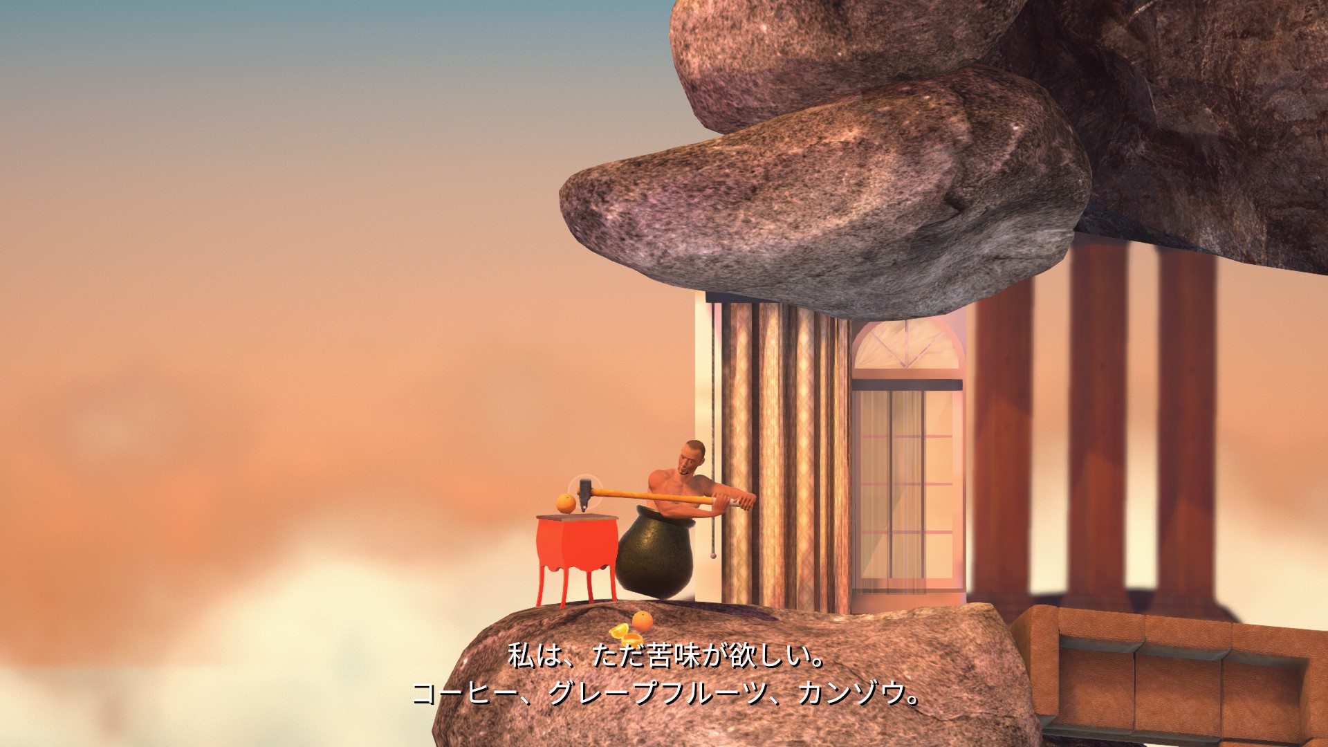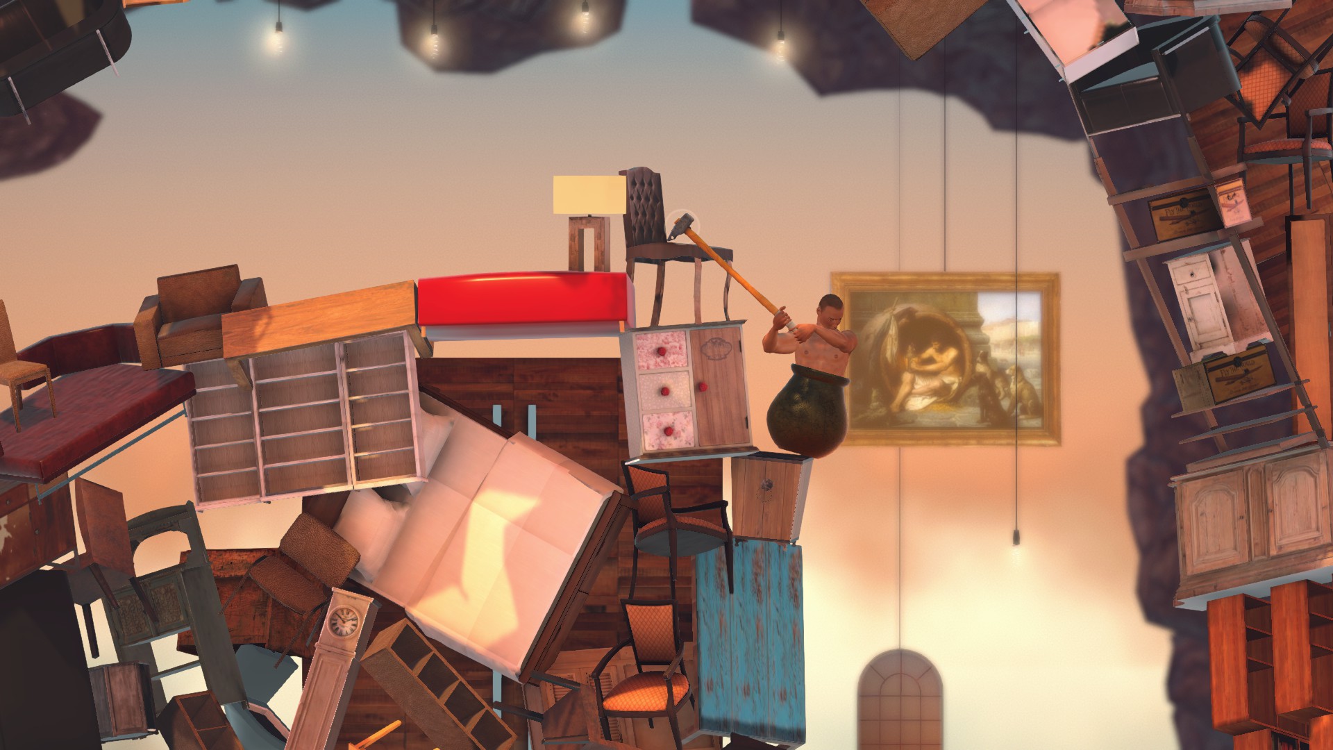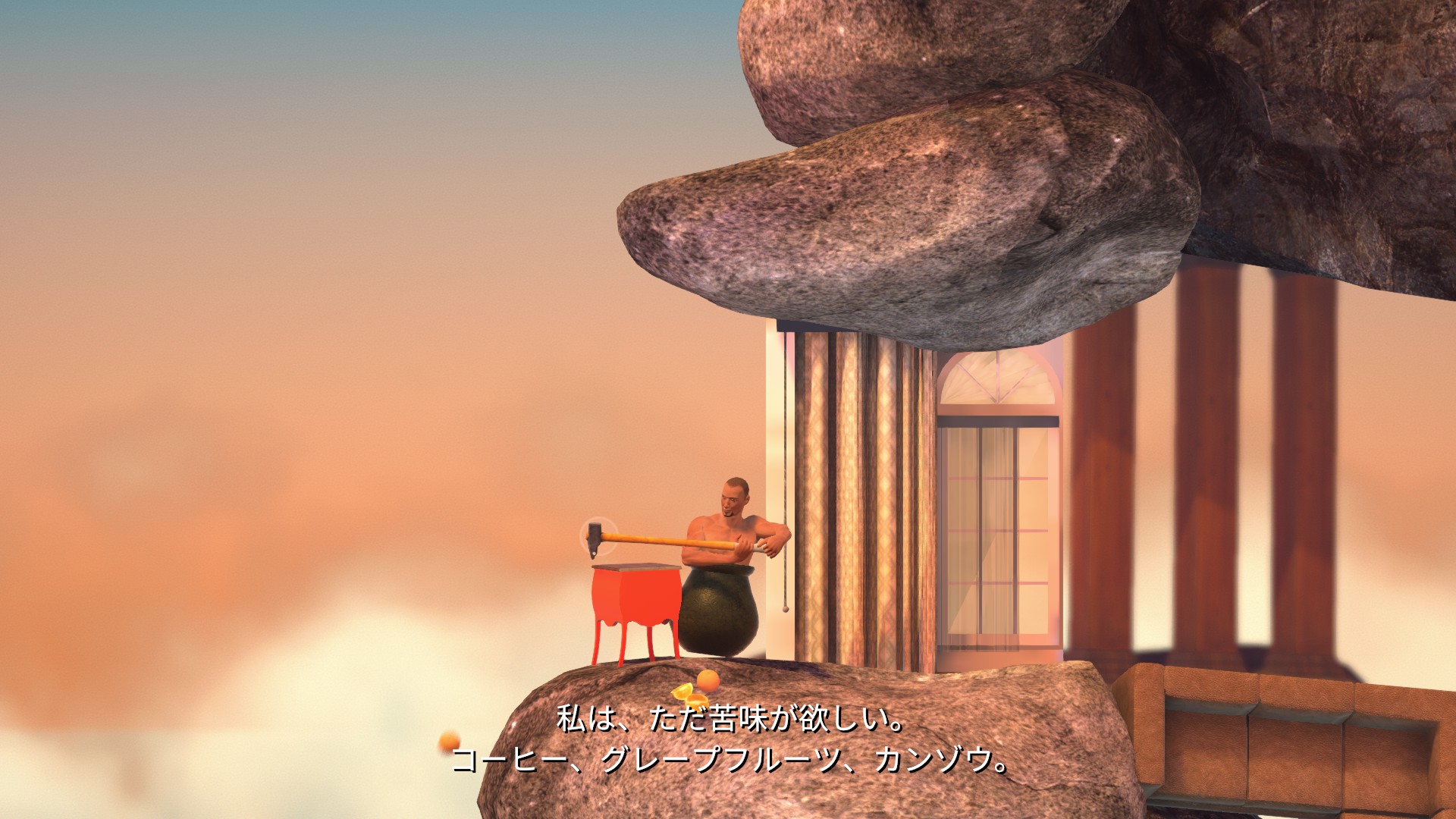 家具地帯へ。シンクからハンマージャンプで上のソファにハンマーを乗せます。