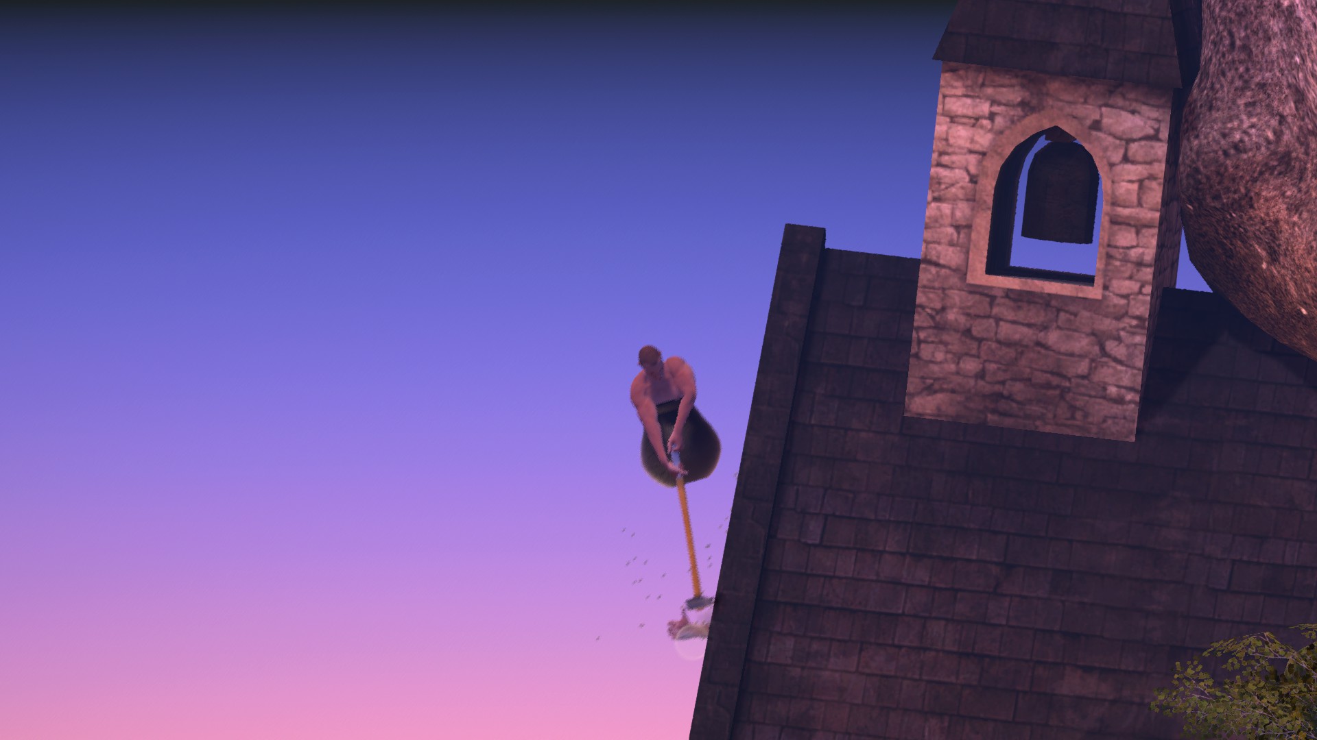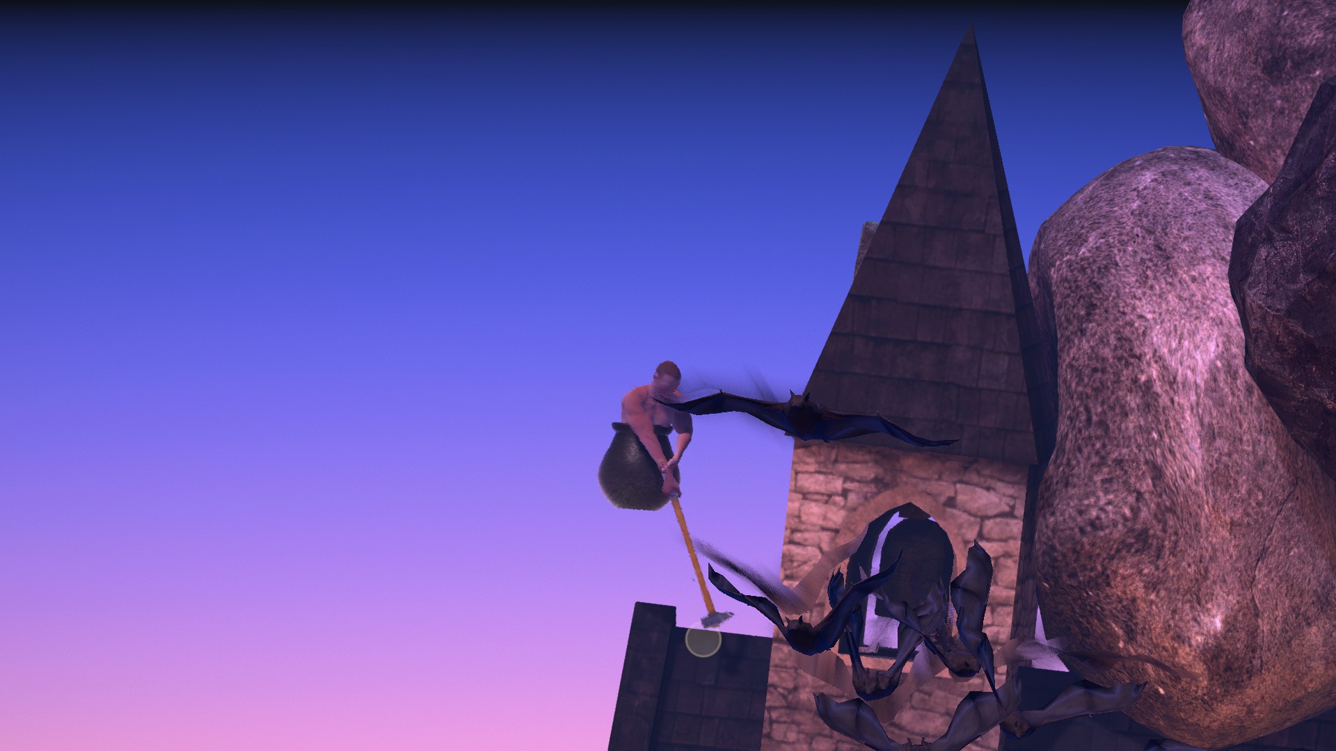 空中で一瞬待たないとハンマーが上のホウキに引っかからずに、