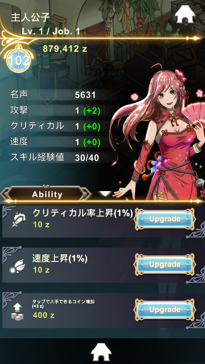 ペットが稼いだ資金を使い、能力ボタンからステータスを見て