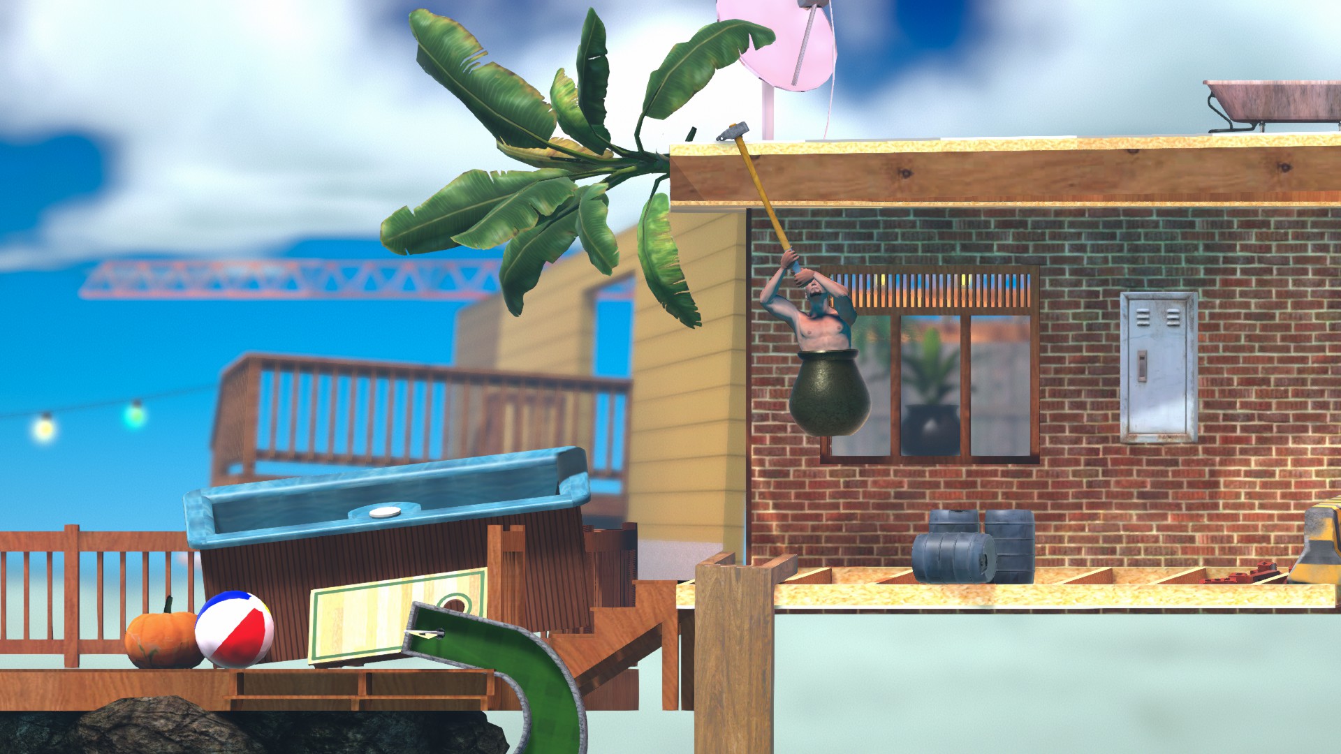 木の板に当てて登った場合は待たずにハンマーをぐるぐるするだけで滑り台まで登れます。